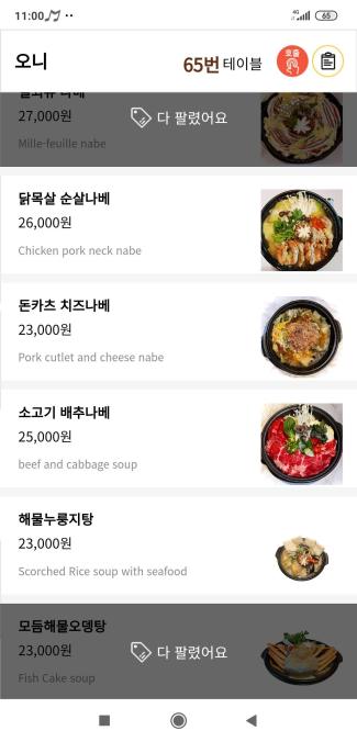 신기하게 이것저것 매진된게 많아서 소고기 배추나베를 주문했다.