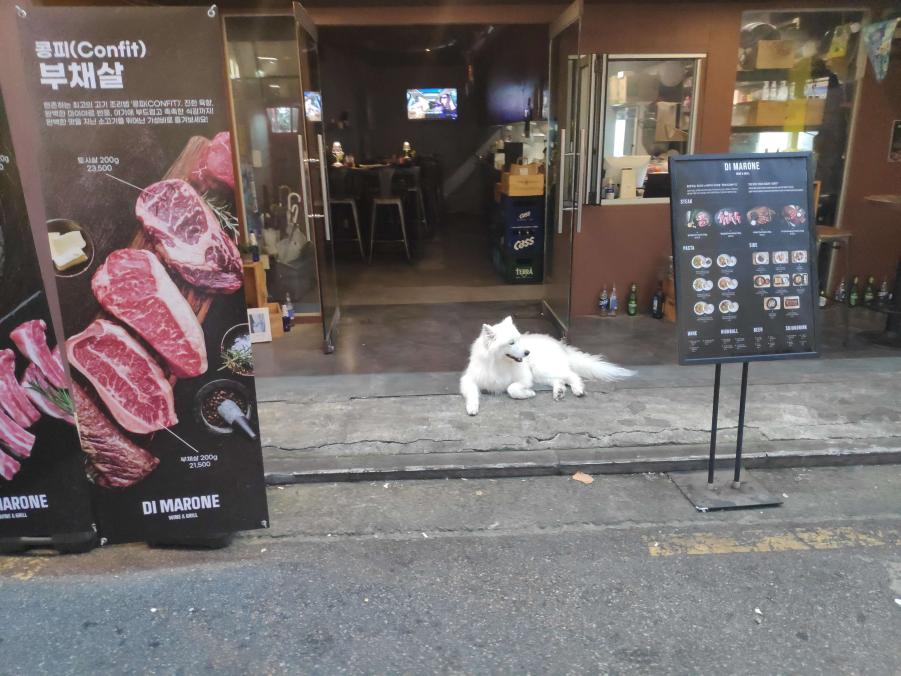 가는길에는 신기하게 입구에 큰 개가 있는 가게도 있었는데