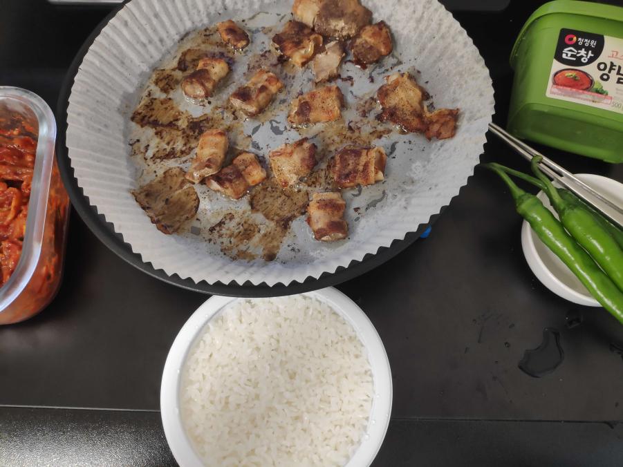 저녁에 남은 삼겹살을 모두 오븐에 구웠지만