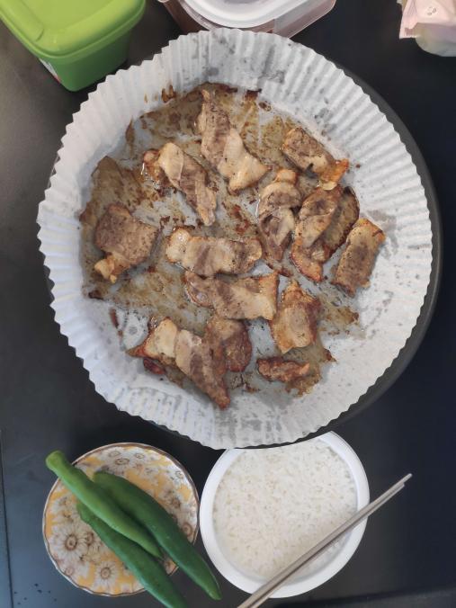 딱히 반찬은 없이 청양고추 3개와 삼겹살을 먹을 수 밖에 없었다.