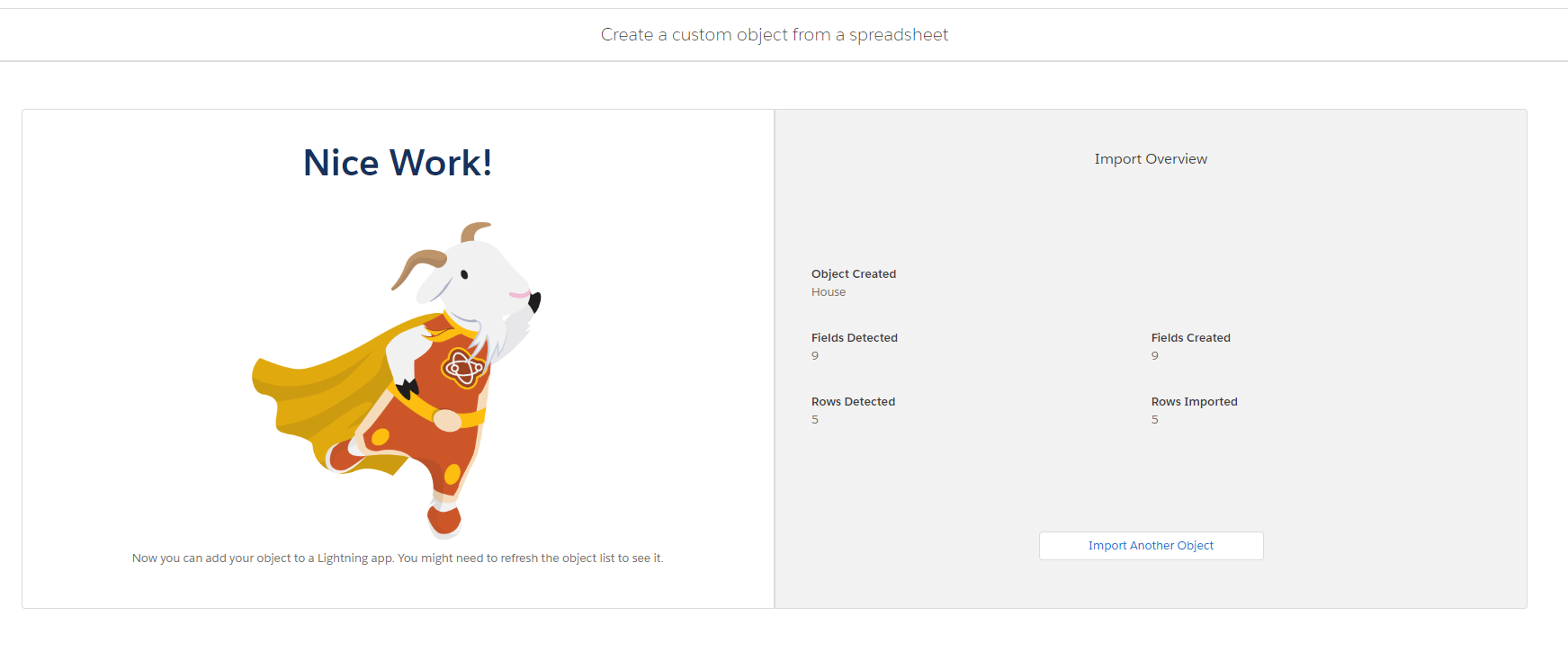 5.Try Again custom object from spreadsheet