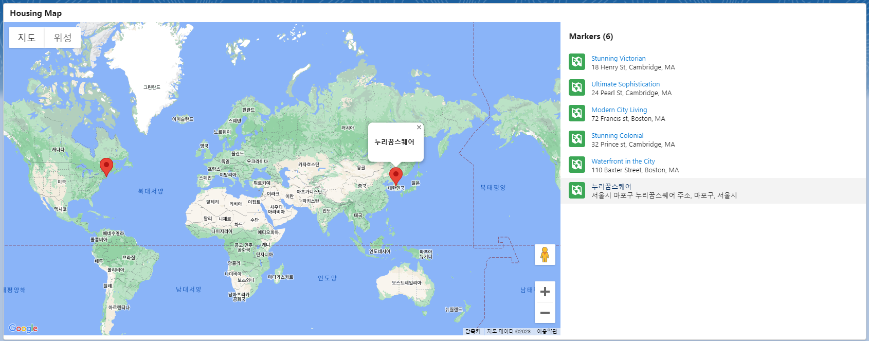 2.라이트닝 맵 사용 (+markers) <lightning-map map-markers={mapMarkers}> </lightning-map>