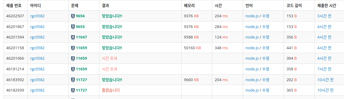 재귀, 배열, 구현등의 문제를 풀면 풀수록 적응이 되서 오답보다 정답의 비율이 더 많아진 것 같다.