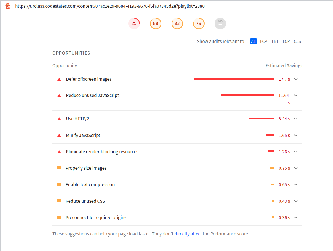 15(추가).코드스테이츠에서 Lighthouse를 실행하니 Performance의 Opportunities에는 다음과 같은 항목들이 있었다.