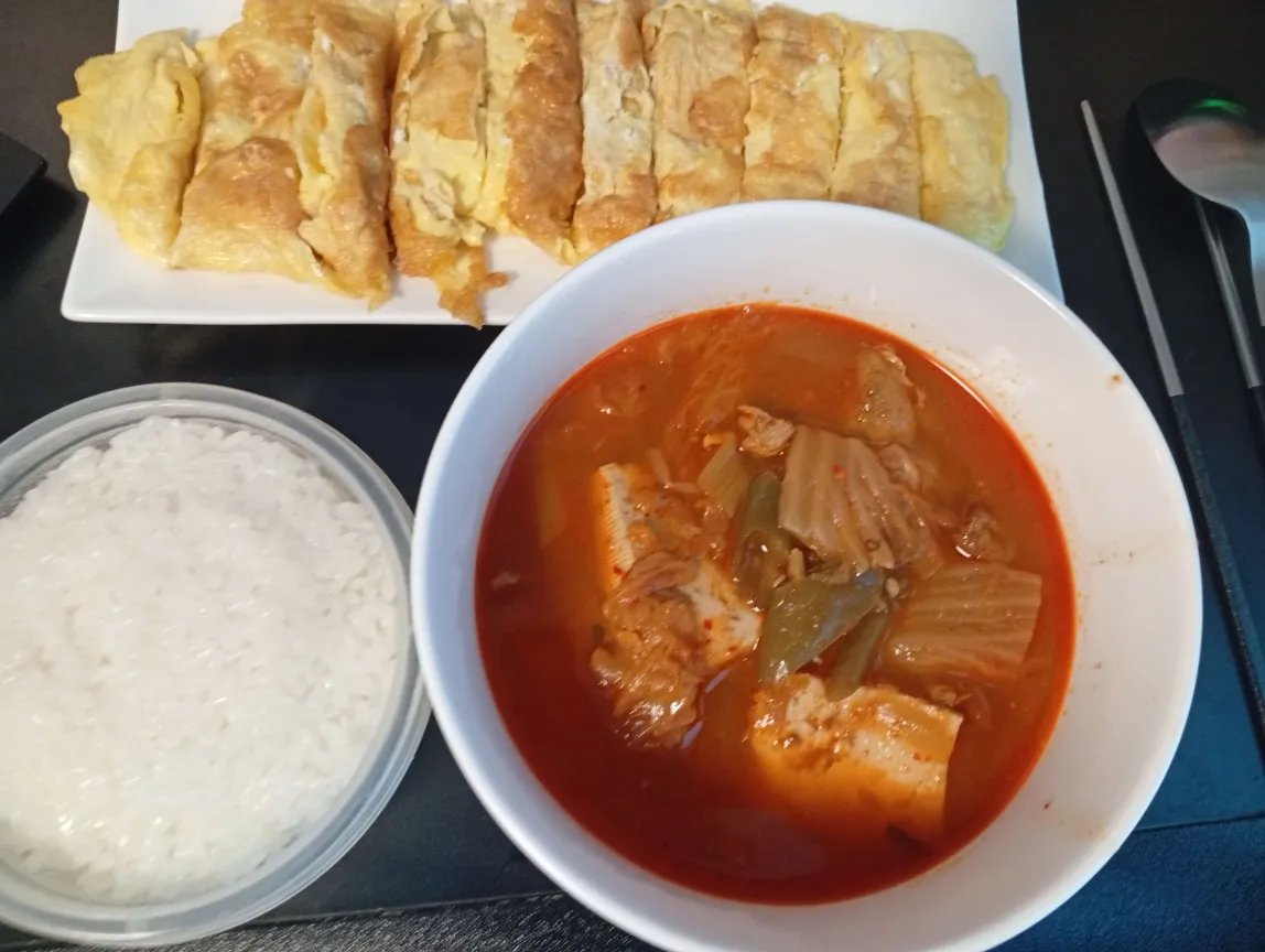 김치찌개도 묵은게 아니고 온걸 그대로 조리해서 그런지 신맛이 부족해서 조화롭지 않은 것 같고