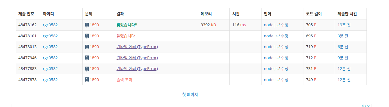 하지만 typeError가 떠서 제출이 되지 않는다..