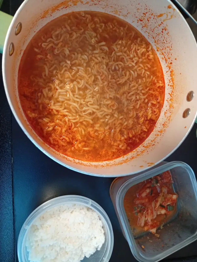 점심엔 라면에 밥을 말아먹으려고 일부러 찬밥느낌으로 보관했는데