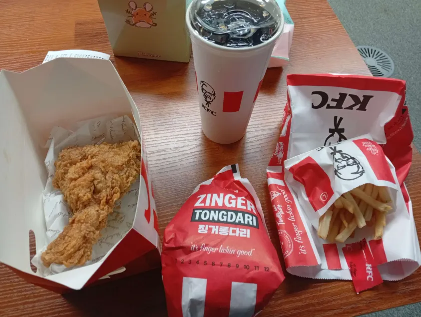 저녁은 야근을 하느라 아무것도 못먹고 계신분이랑 같이 KFC에 가서 이것저것 샀는데