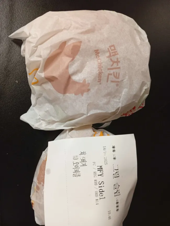 쿠폰으로 치즈버거를 구매 가능했고 맥치킨도 할인이라 2400원에 두개를 사왔는데
