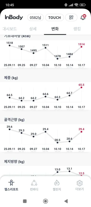 고점이 이정도라고 보면 근골격이 2kg가까이 빠졌다는 것이라서 다시 열심히 해야 할 것 같다.