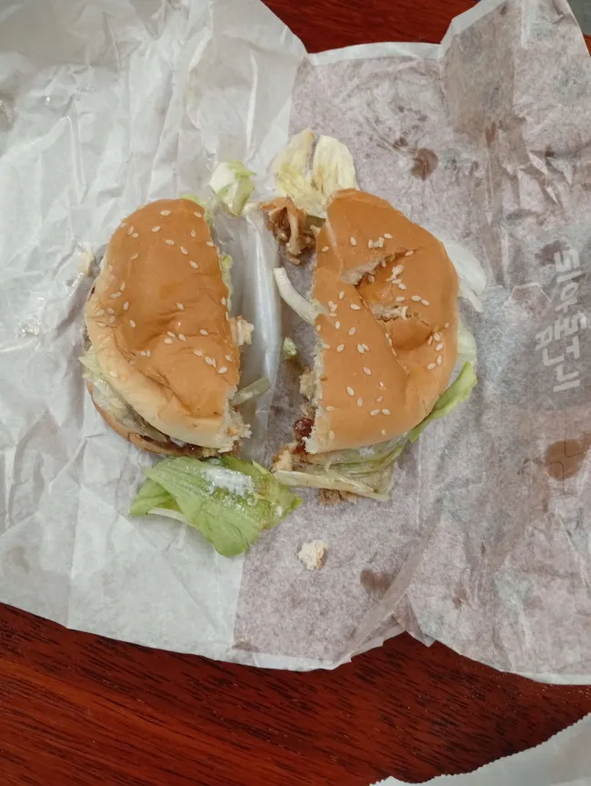 저녁은 회의 사이에 빠르게 롯데리아에서 햄버거를 사왔는데