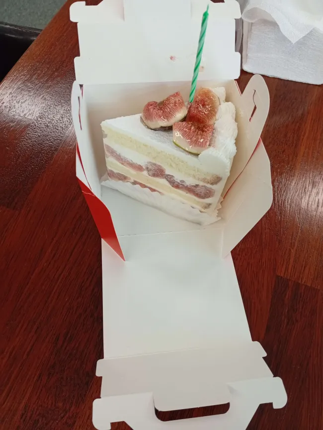 초는 불어야 할 것 같다는 팀원분의 의견에 따라 작은 조각케이크 하나를 먼 곳인 구움소리까지 가서 하나를 구매했다.
