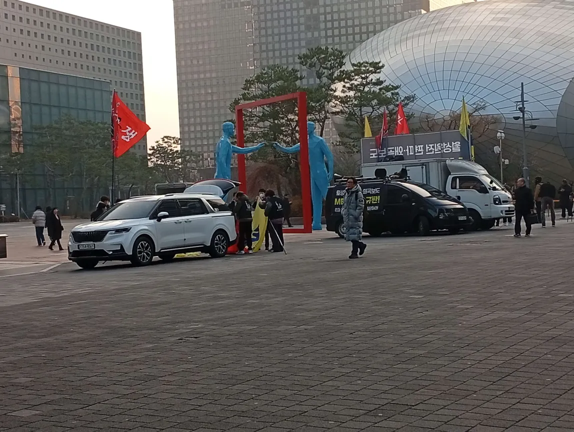 출근길에 뭔가 요란해서 남들이 사진찍길래 같이 찍어보긴 했는데 뭘 위해서 하는지는 잘 모르겠다.