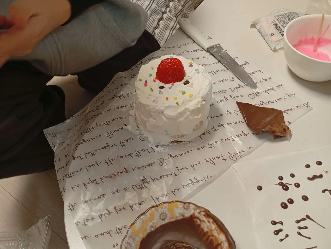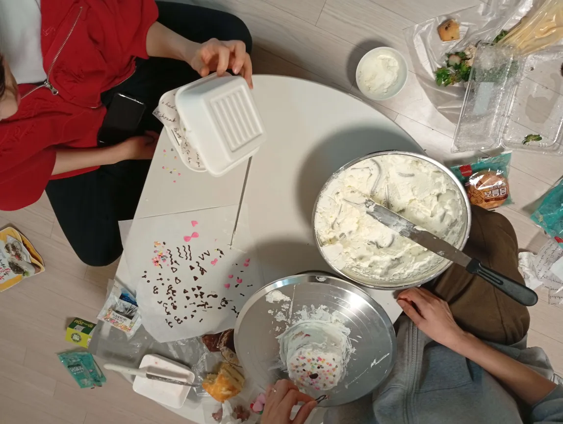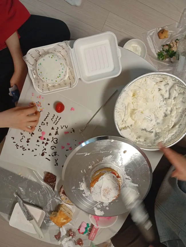 그 와중에 초코도 녹여서 짤주머니를 만들고 생크림도 휘핑하고