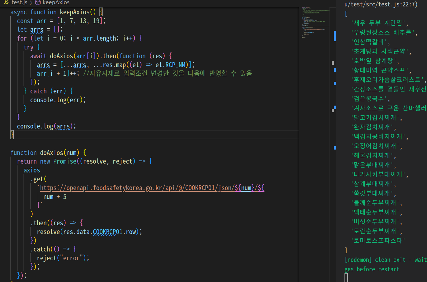 다음 진행할 값에 변화를 줬더니 받아온 api의 값이 달라진 모습을 확인하며 가능성을 본 시점의 사진이다.