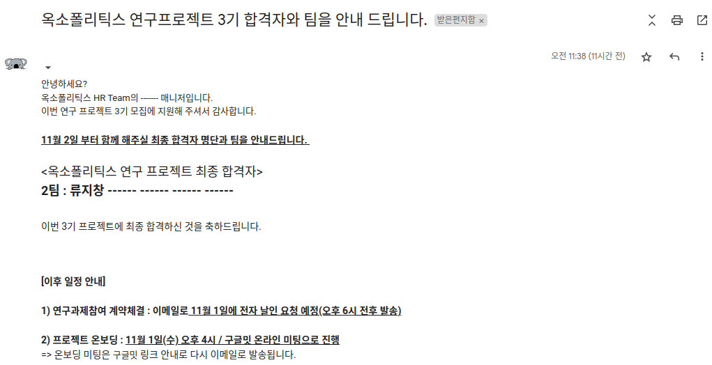 디스코드로 동기분께서 같이 합격했다며 좋은(?)소식을 전해주셨다.