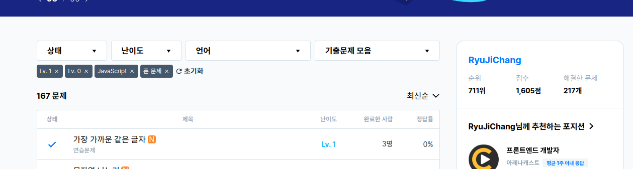 중간에 원티드에 정답자 0명인 신규문제를 발견하고 허겁지겁 풀었지만