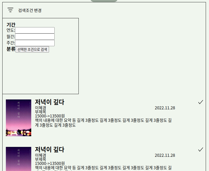 또한 아래의 기간 설정에서 연도, 월간, 주간 선택은 figma로 받아본 것이기 때문에