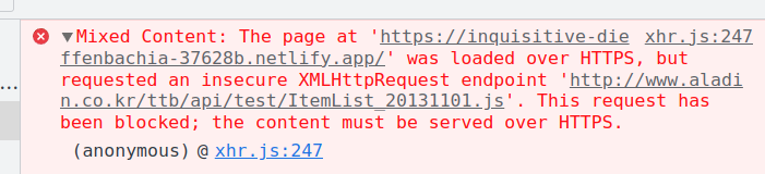 아래의 사진과 같은 Mixed Content 문제가 발생한다.