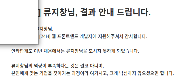 24시간 안에 탈락안내가 나온다는 차이점이 있을 뿐 별다른 차이는 없었다.