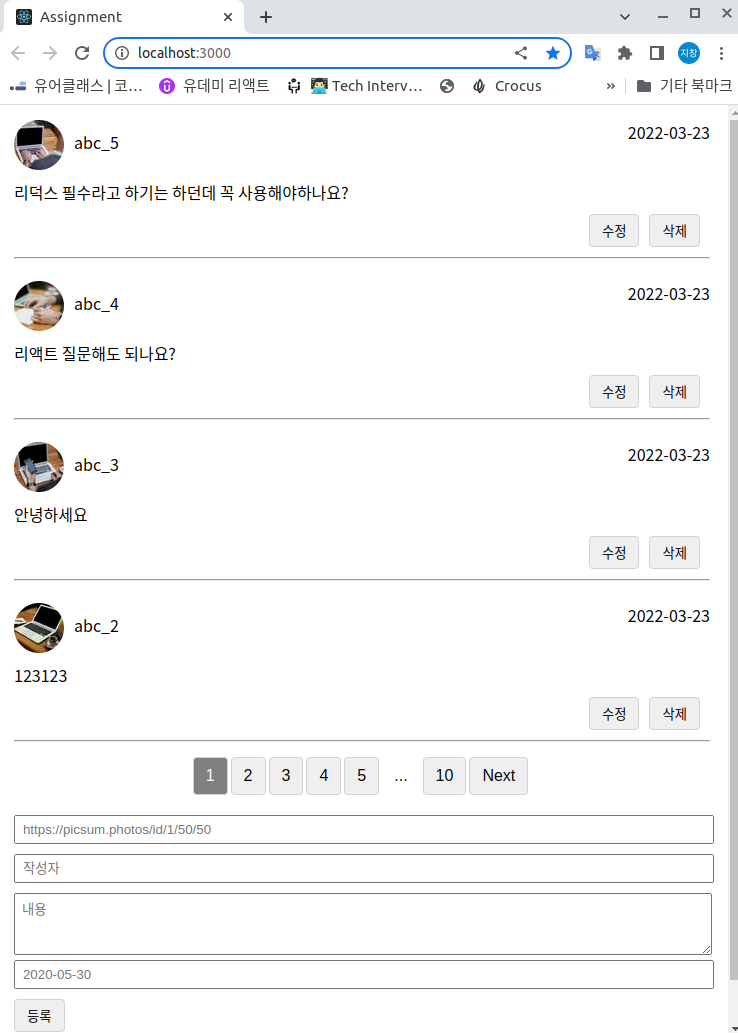 Update가 조금 더 까다로웠는데 현재 페이지는 유지하면서