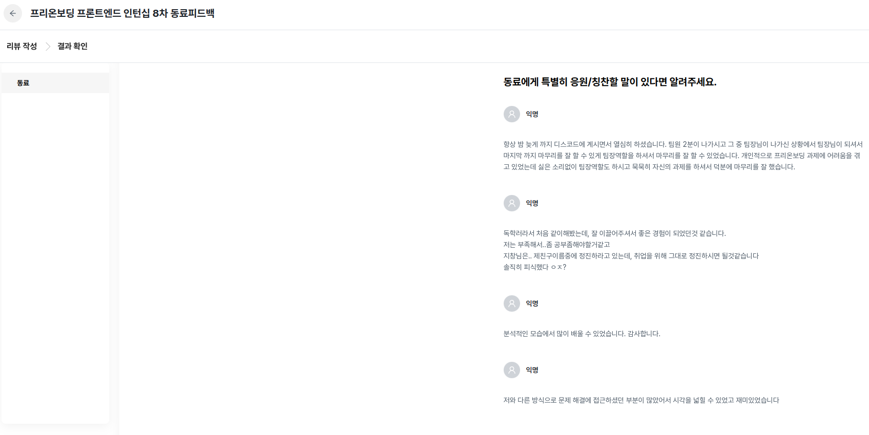 오늘은 레몬베이스로 진행했던 원티드 인턴십 동료평가 피드백이 나오는 날이었다.
