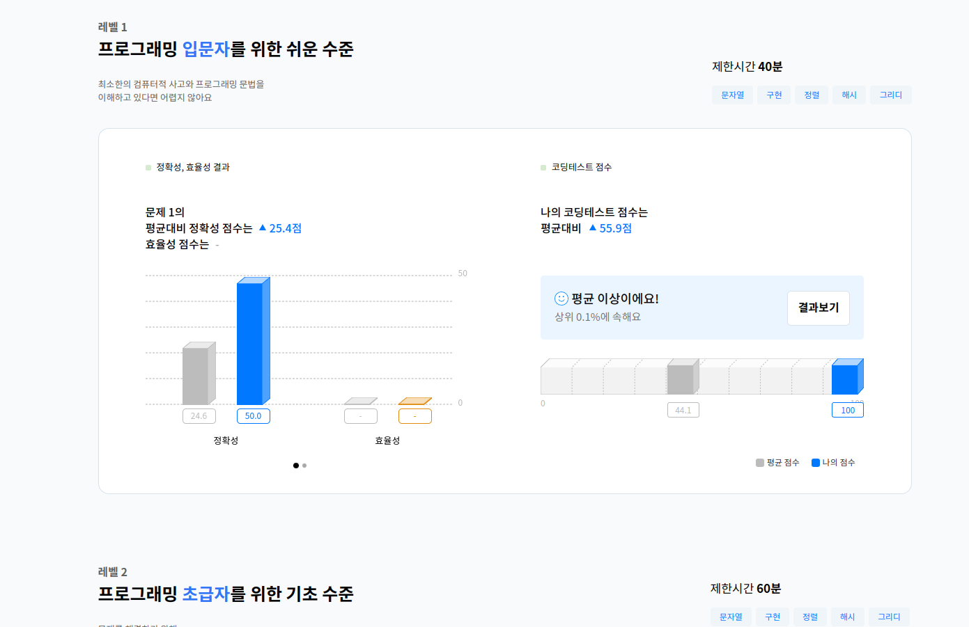 오늘은 프로그래머스 스킬체크 테스트가 있다는 말을 듣고 해봤는데