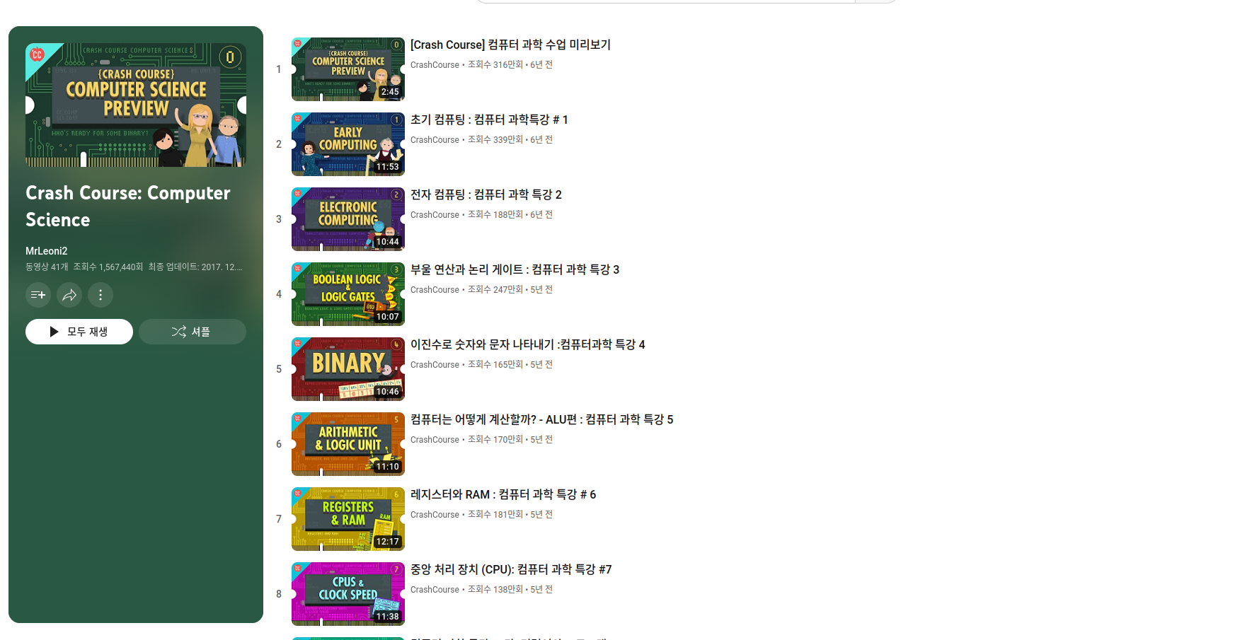 오늘 드디어 Crash Course: Computer Science를 다 들었는데