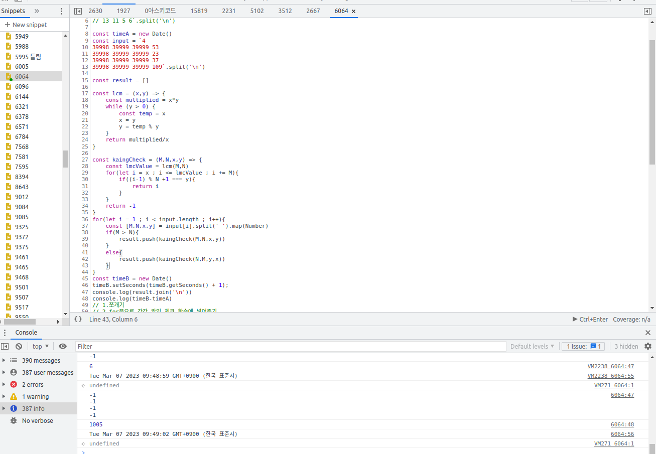 큰 숫자를 기준으로 더해가며 체크해 훨씬 빠르게 결과를 도출해낼 수 있었다.