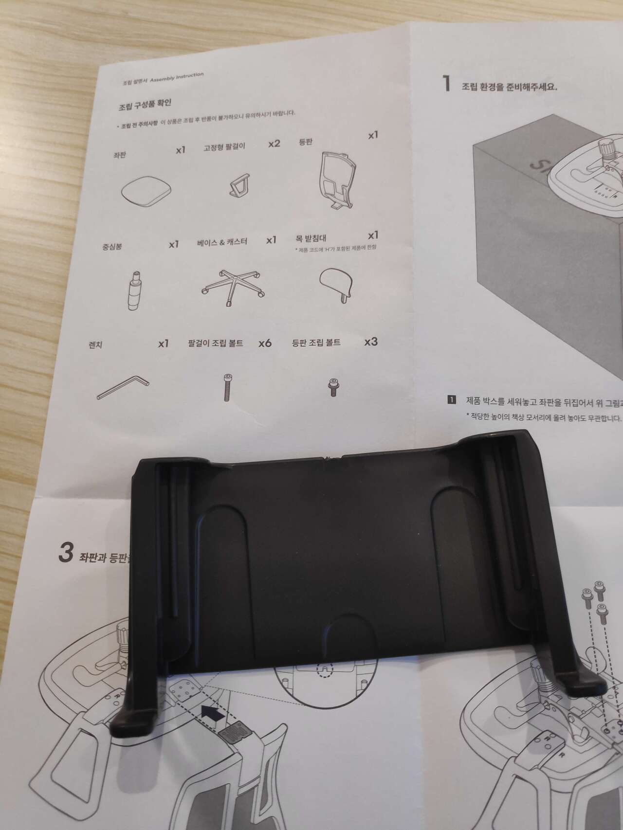 2년쯤 전 동일한 의자를 집에서 조립할 때 느꼈던 어려움이나 무거움은 전혀 없었고