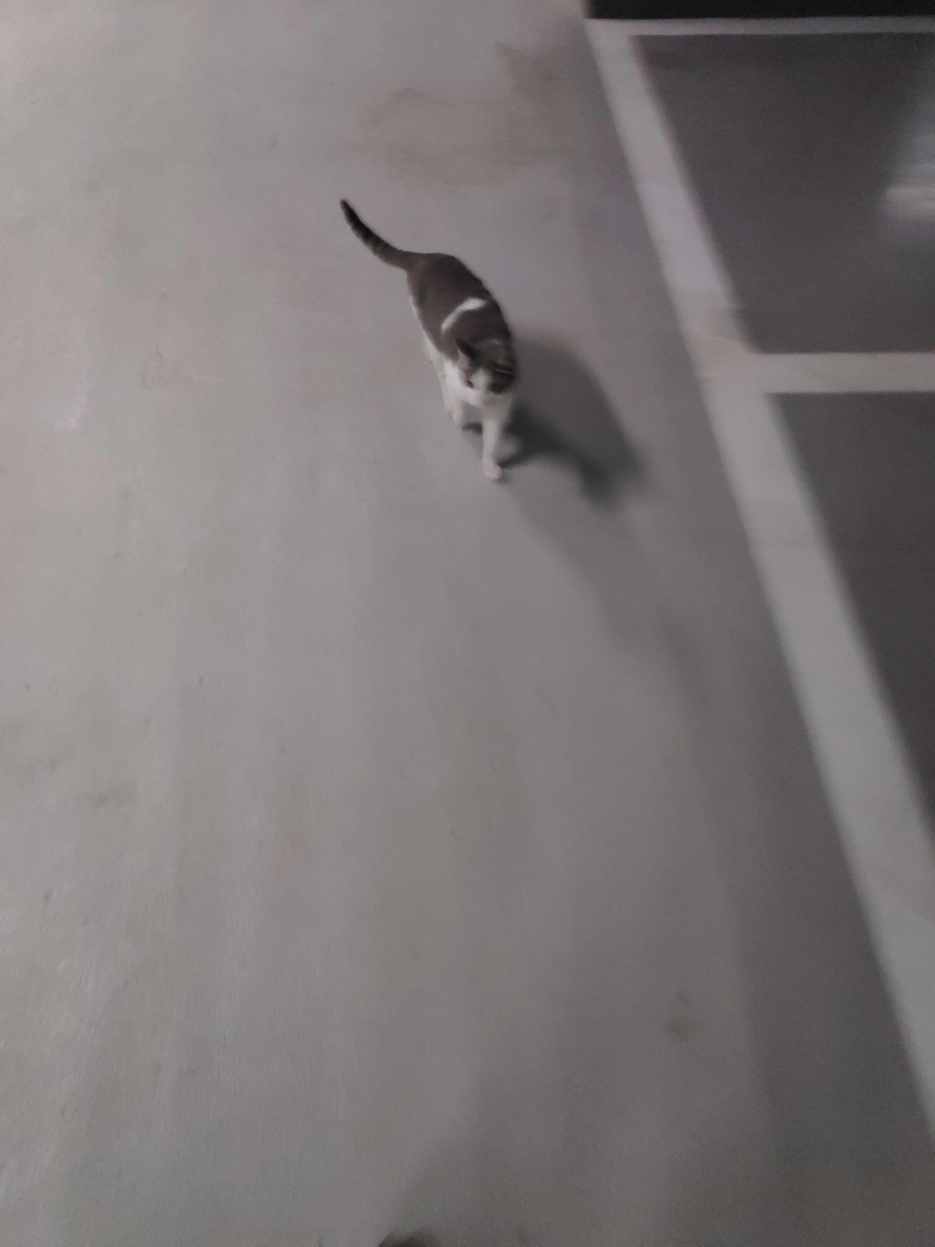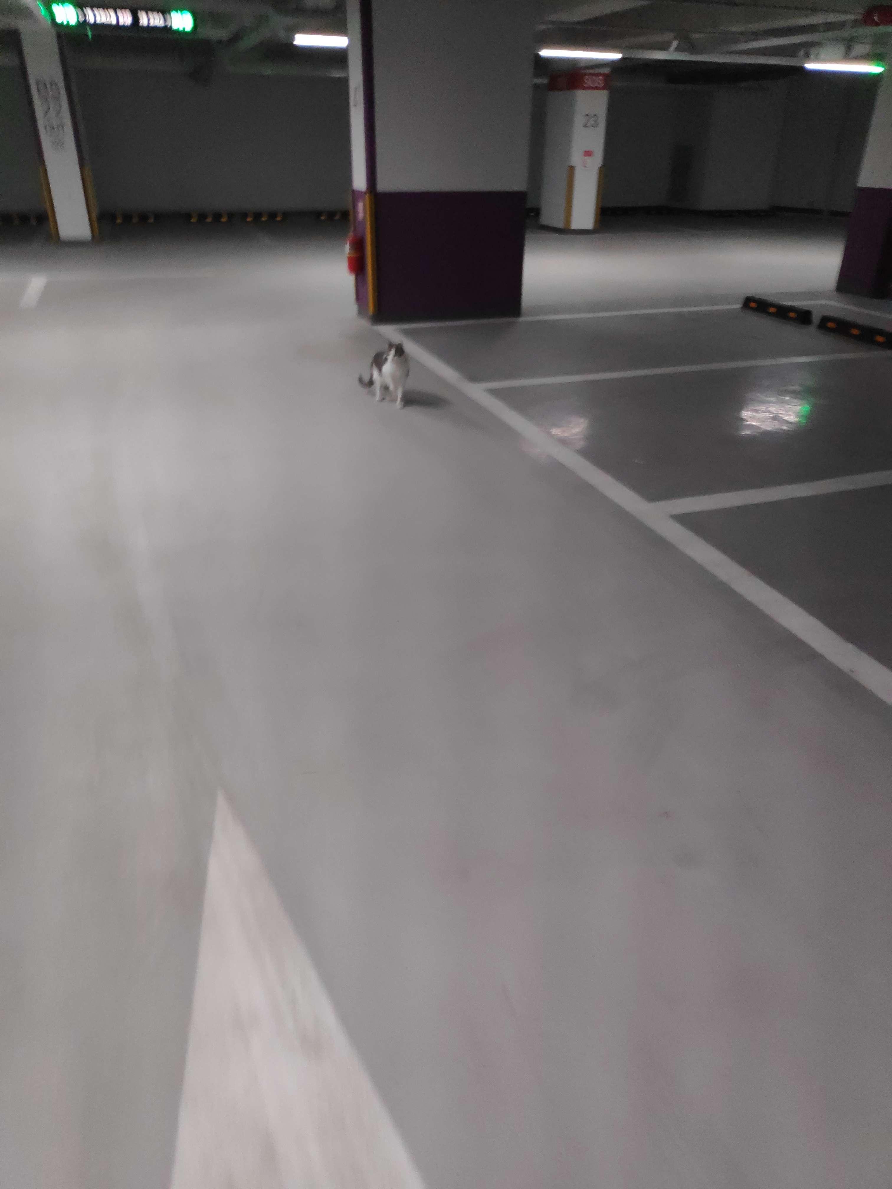 고양이가 왜 지하주차장에 혼자 있는지는 모르겠다.