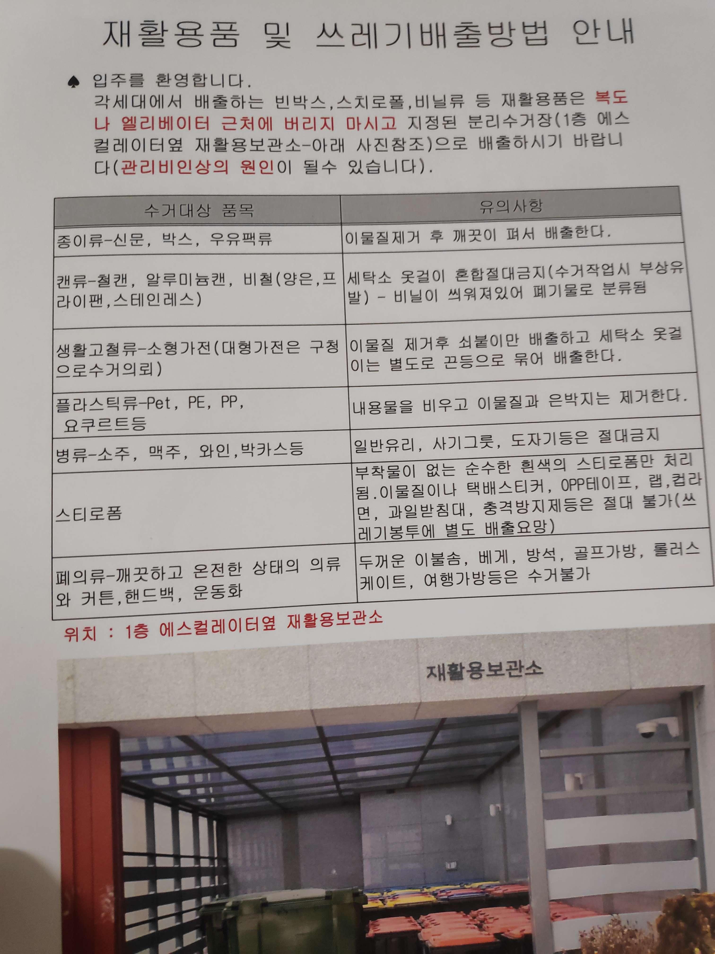 혼자서 터득한 분리수거장과 분리수거법 또한 안내받을 수 있었는데