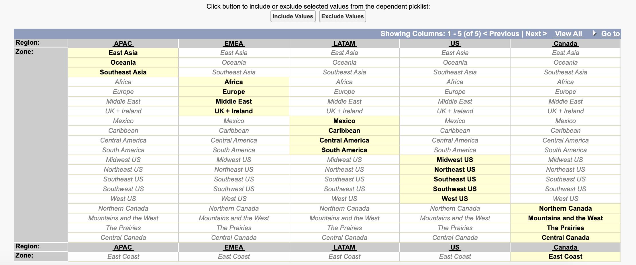 상위 필드를 선택한 경우 하위 필드의 선택 가능한 목록이 고정되게 할 수 있다.