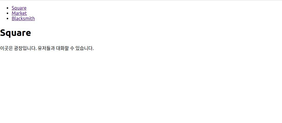 아래 작성된 내용은 학습 내용을 수정해 로또번호 추출기(?)를 만든 사진과 route를 사용해 광장, 시장, 대장간을 만든 모습이다.]
