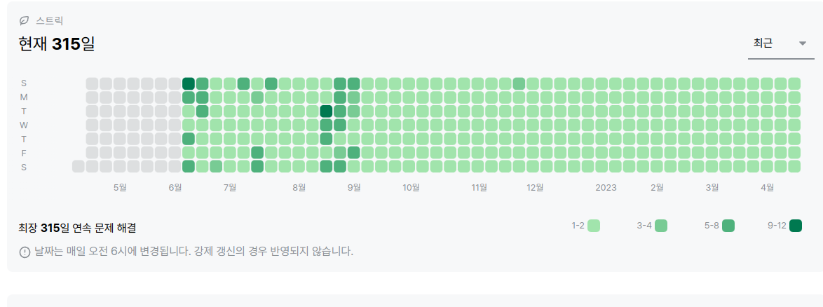 매일 아침 풀고 출근하던 습관 때문에 멍하니 기록이 깨질 뻔 했다.