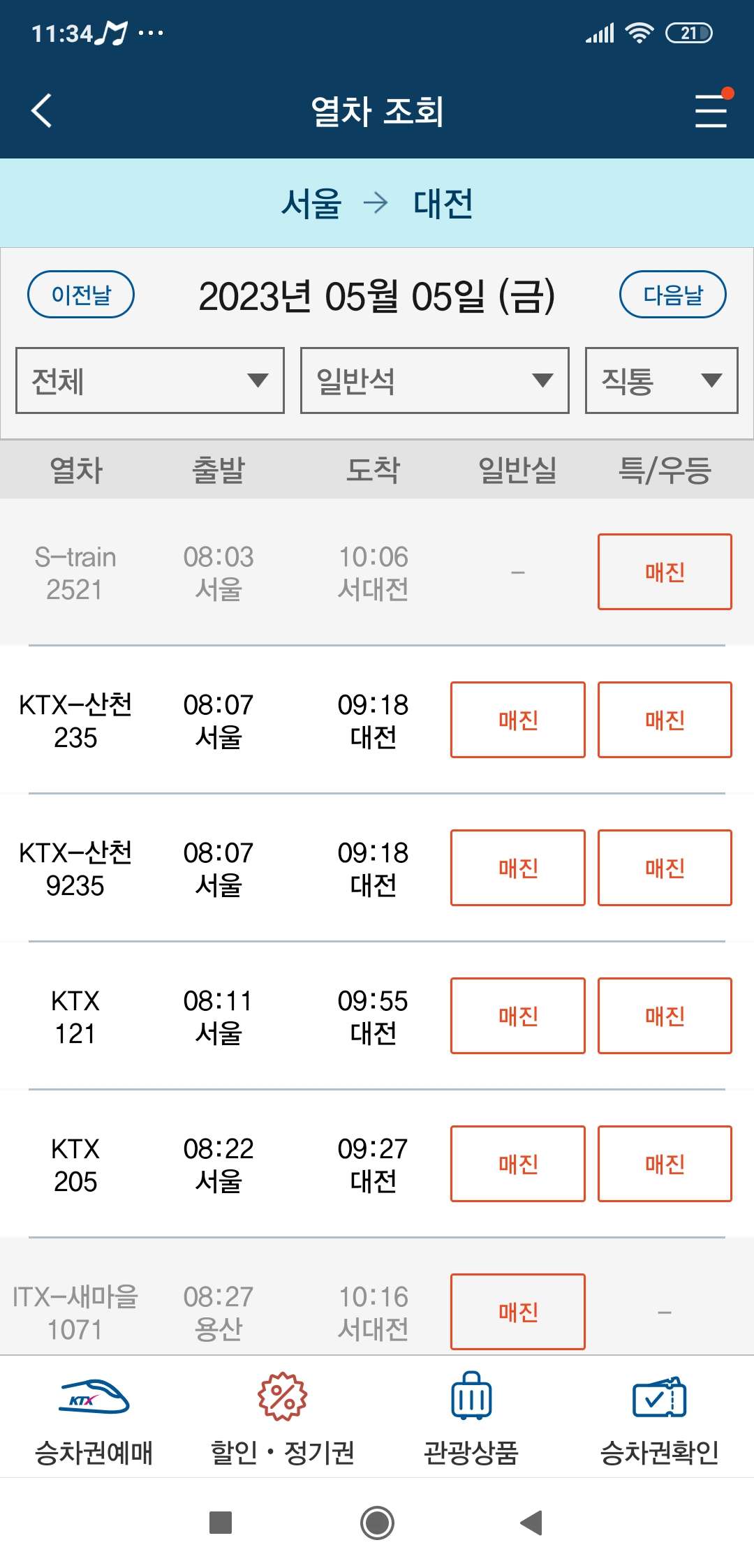 다음 주에 대전에 내려가려고 미리 표를 확인했는데