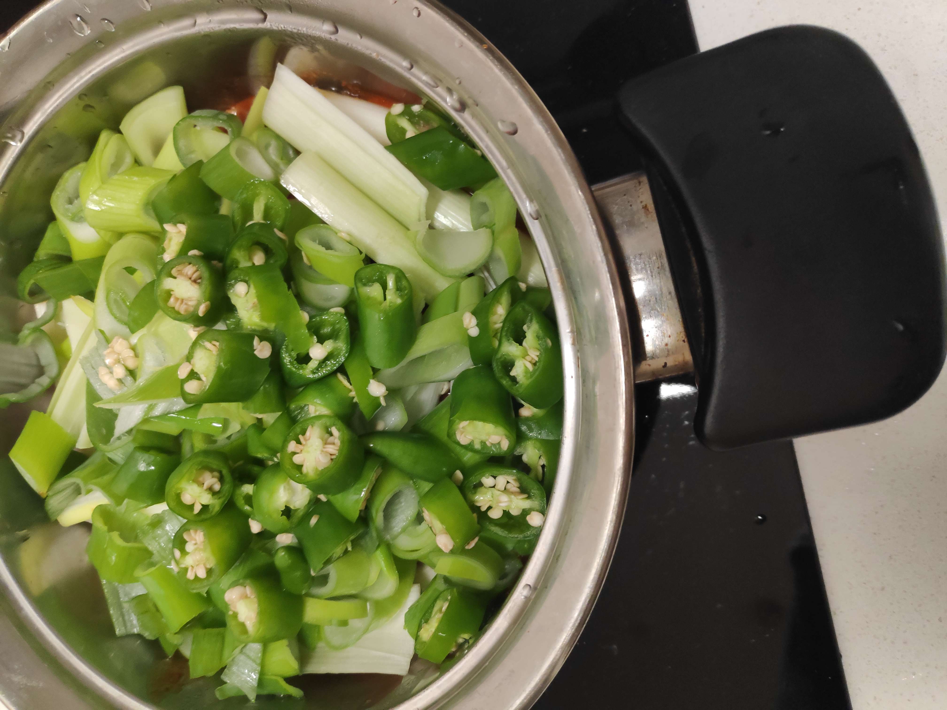 어찌저찌 야채를 넣고 요리를 시작하는데