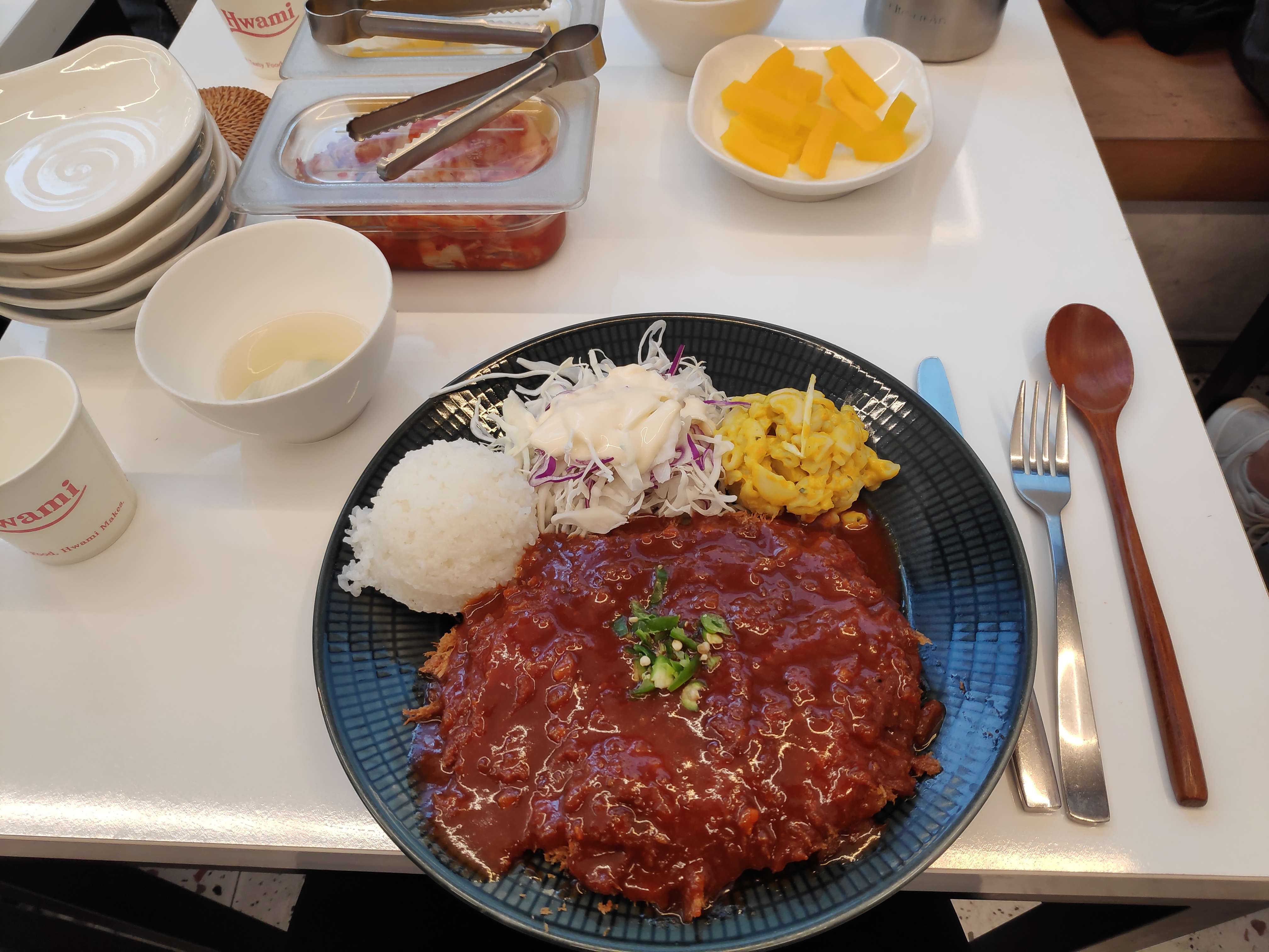 평소처럼 매운 돈가스를 주문했는데