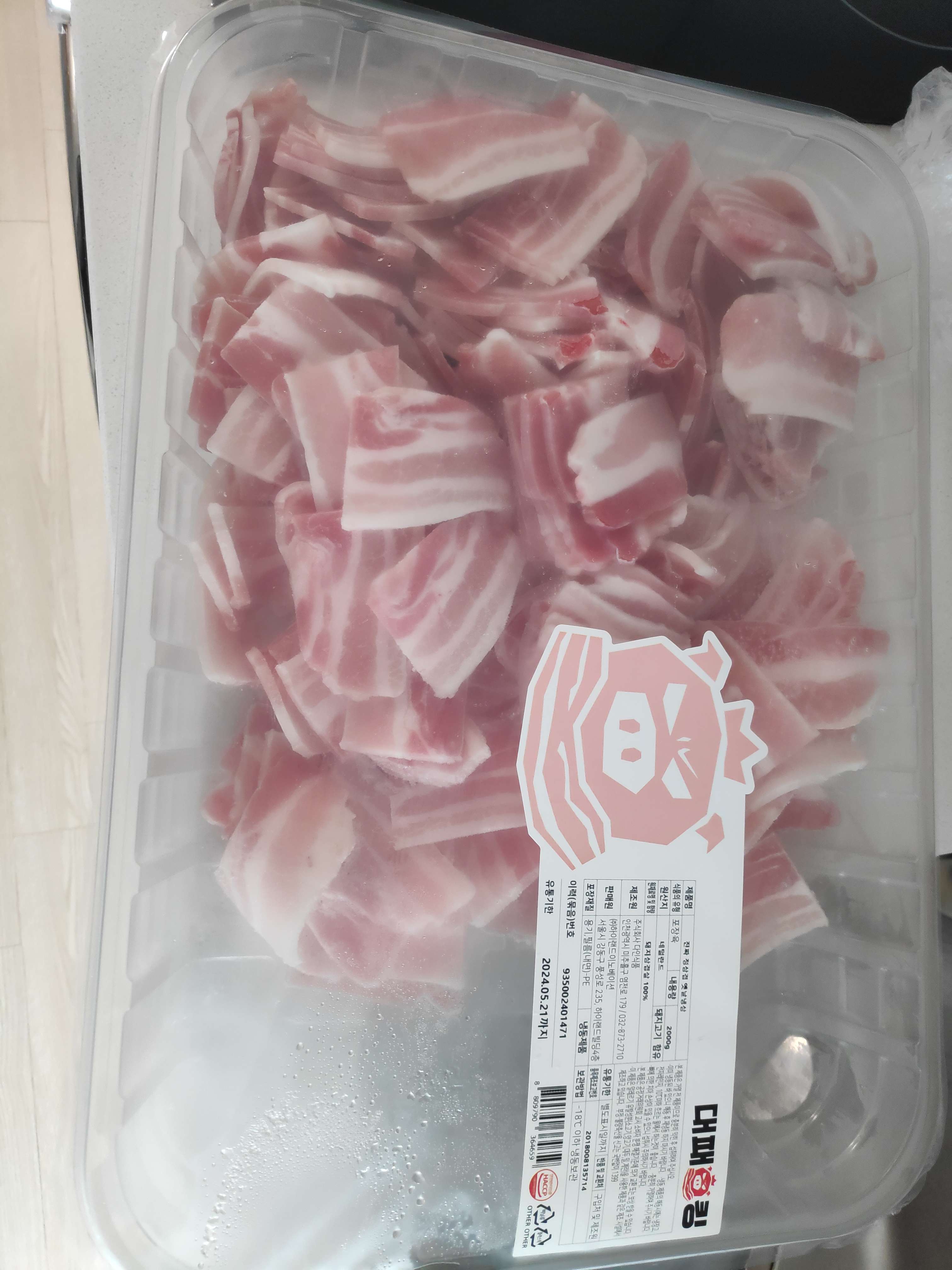 2kg이라는게 생각보다 덩치가 많이 커서 냉동실에 들어가지 않았고