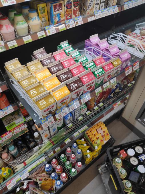 분리수거를 위해 나갔는데 진열대에 음료수를 정리하고 있었다.