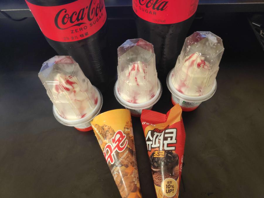 결국 1+1 콜라와 혼합 5개 구매시 50%할인이라 5개를 구매하게 된 아이스크림을 사서 집으로 돌아왔다.