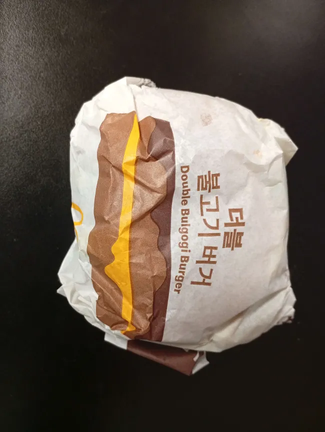 저녁은 오는 길에 할인하는 더블불고기버거를 사왔는데