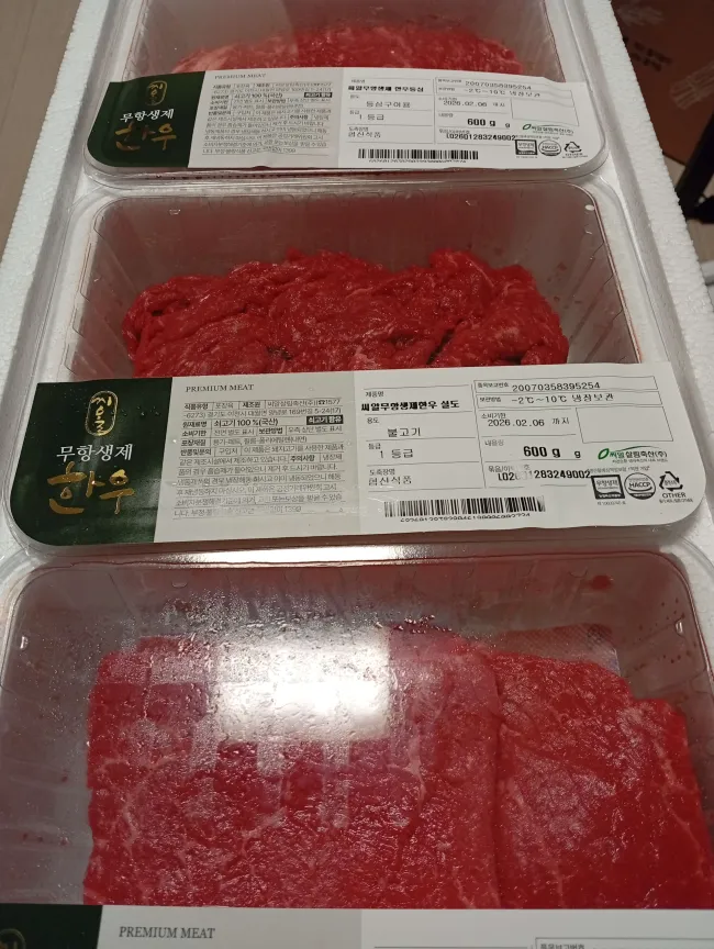 집에 와보니 설날 선물로 불고기, 구이, 국거리 600g씩? 1.8kg 한우 선물이 와있었는데