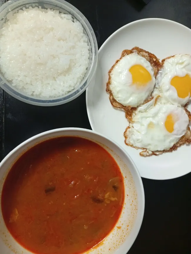 저녁은 김치찌개와 계란후라이를 먹었는데