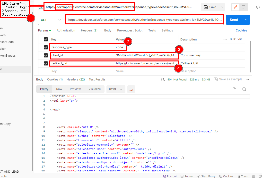 해당 내용은 10분이 걸리다던 Connected App이 아직까지 세팅되지 않아서 발생하는 문제일 가능성이 크다.